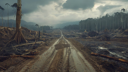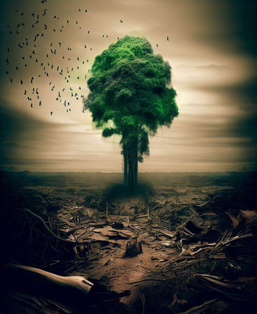 destruction of pristine forests to make way for industrial development, emphasizing the irreversible loss of biodiversity. Generative AI