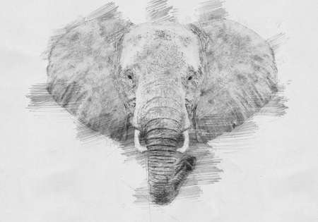 Elephant. Black and white sketch with pencil