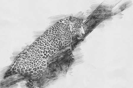 Collection animals. Black and white sketch with pencil