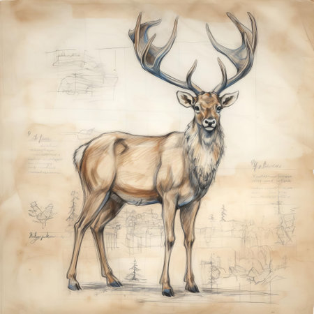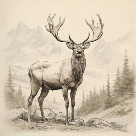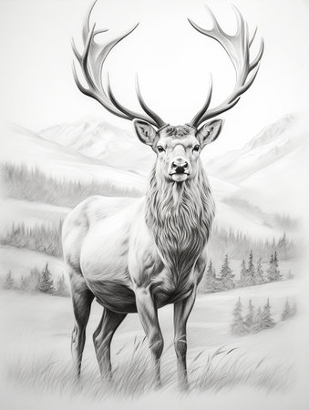 the caribou, also known as a reindeer, is majestically depicted in this detailed sketch, showcasing its distinctive antlers and thick winter coat, set against a subtle background, evoking the arctic wilderness and its natural habitat of snow-covered forests and tundras. ai generated