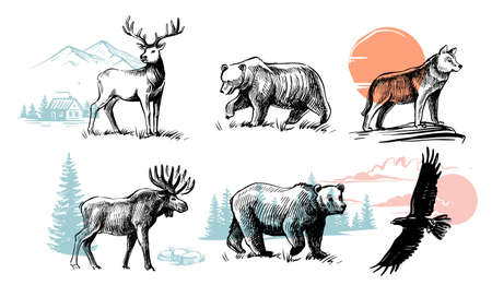 Wild animals drawing. Wolf deer and bear