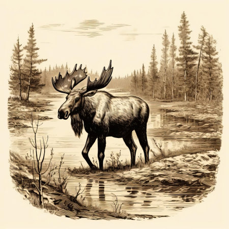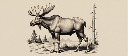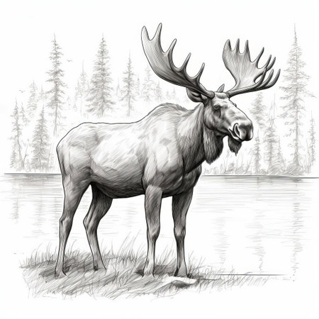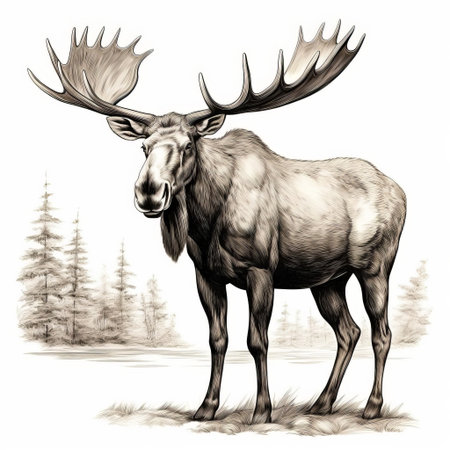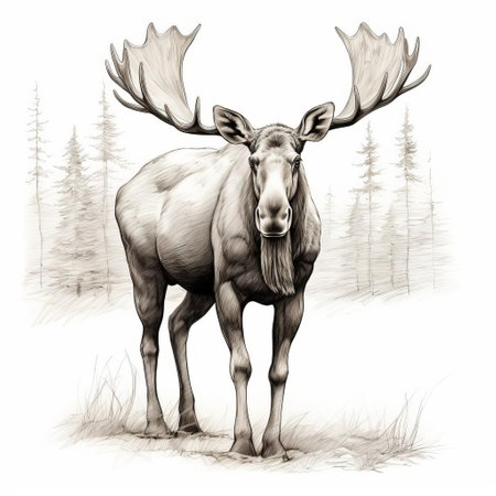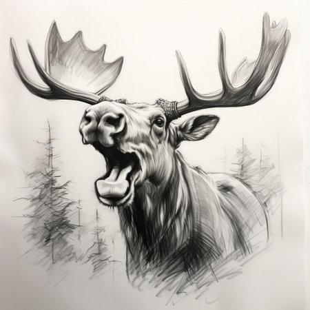 a realistic portrait drawing of a moose in an outdoor scene. the high level of detail in the character design showcases the contoured shading and elegant inking techniques used. this scientific illustration captures the essence of the majestic moose, merging artistry and accuracy seamlessly. ai generated