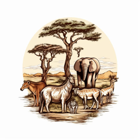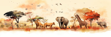 watercolor painting of Safari group animals vector graphic