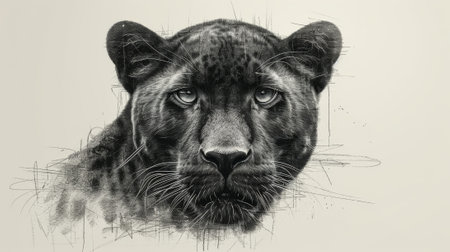 Charcoal drawing of a black panther emerging from a misty background, a captivating wildlife portrait
