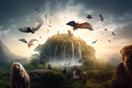 Climate and weather change of planet. Eco friendly, biodiversity, conservation and environmental protection concept. Flora and fauna on Earth. Green ecosystem of Earth. Care of nature and ecology