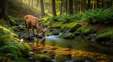 Shot of a deer posing in front of the camera. Selective focus, natural light.