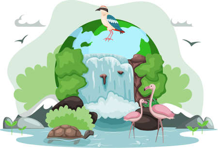 World Wildlife Day banner with wild animals and plants. Vector illustration.