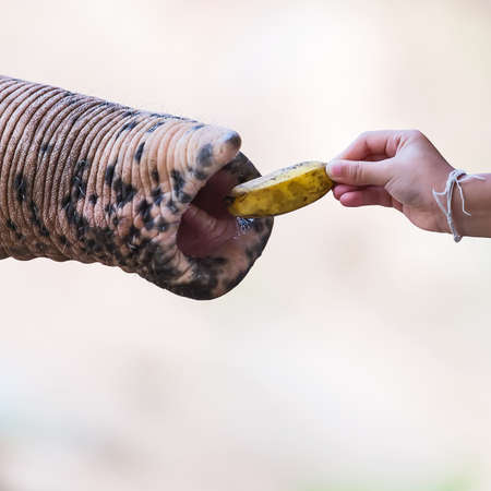 Elephant feeding of tourists.