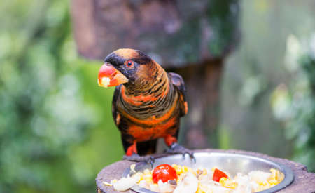 Parrot gloomy, Pseudeos fuscata eating fruit