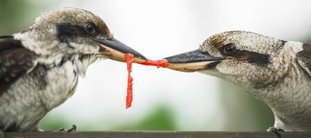 Australian kookaburras outdoors fighting for food during the day in Queensland