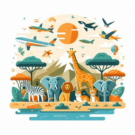 African animals and birds in a flat design