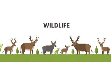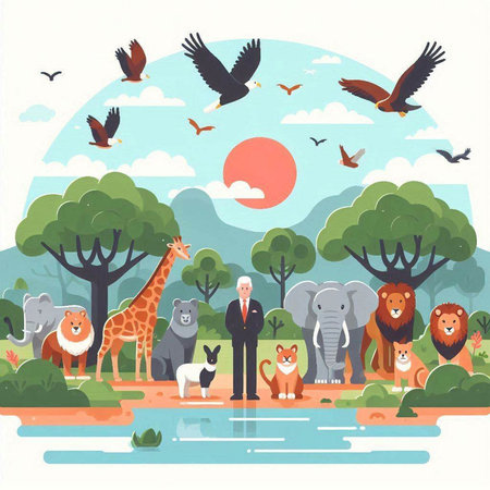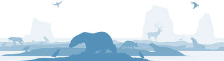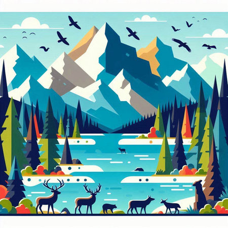 Vector illustration of wild animals in flat style. Wild nature landscape.
