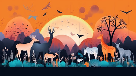 The life cycle of forest animals. world wildlife by Animal on earth, wildlife concept, environment d