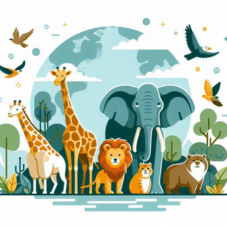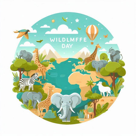 An eye catching illustration of World Wildlife Day with the animals, Earth Day concept. Created using Generative AI tools.