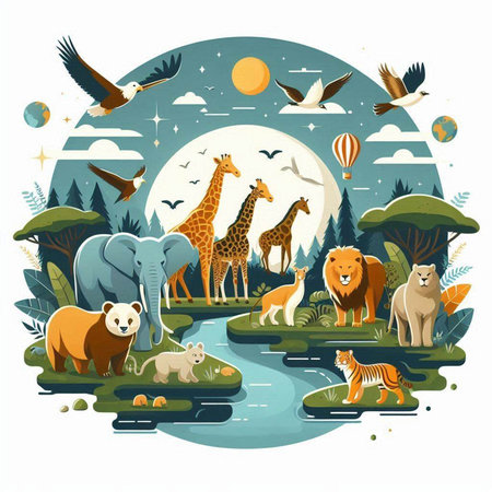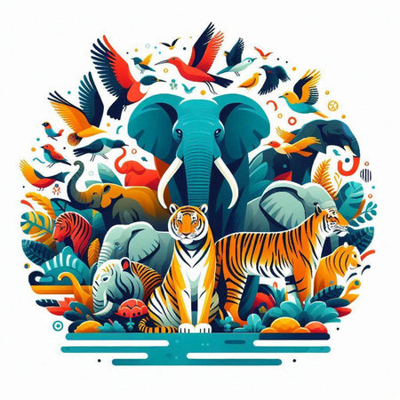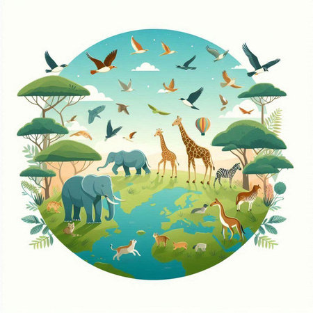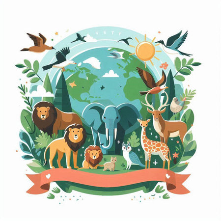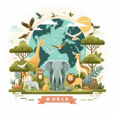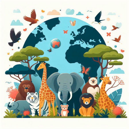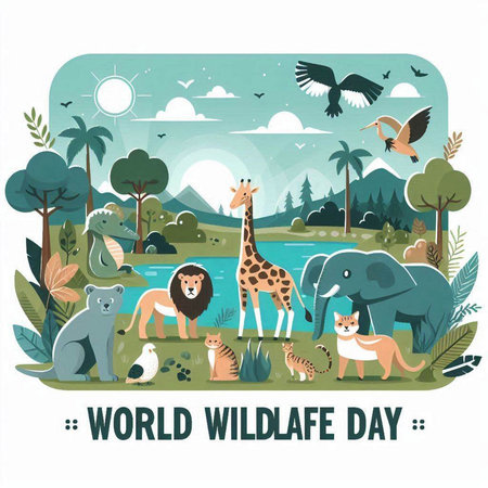 An eye catching illustration of World Wildlife Day with the animals, Earth Day concept Illustration. Created using Generative AI tools.