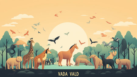 World Wildlife Day. Vector illustration of wild animals in the jungle.