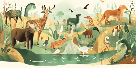 Habitat Scenes: different habitats that feature different animals in their natural environments. Generative AI.
