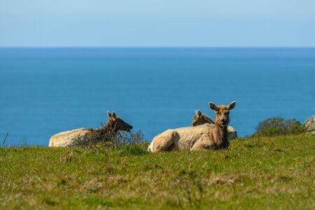 Female Tule Elk Rest Above Surf along California coast