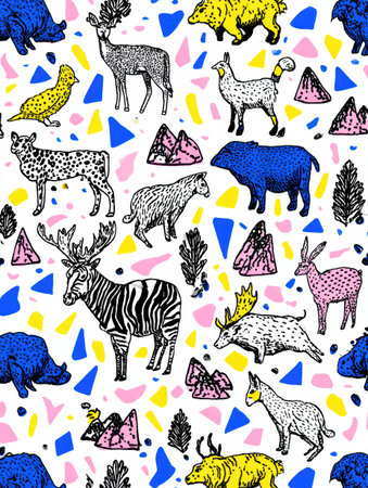 Nature-inspired animal patterns, colorful abstract expressions on a seamless background create a captivating visual display