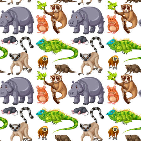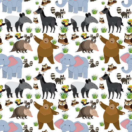 Seamless pattern with cute wild animals on white background illustration