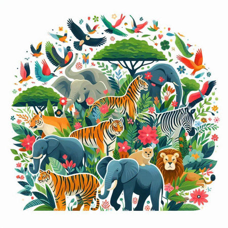 An eye catching illustration of World Wildlife Day with the animals, Earth Day concept. Created using Generative AI tools.