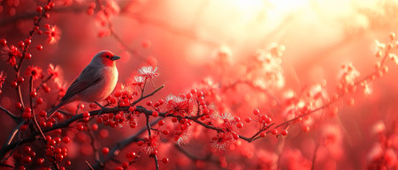 Red cardinal bird isolated on red background. Red cardinal bird in flight.
