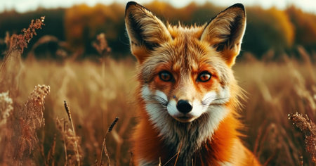 Portrait of a red fox on a background of the autumn field