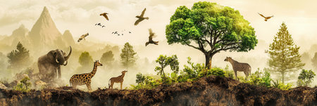 A group of wild animals background for world wildlife day