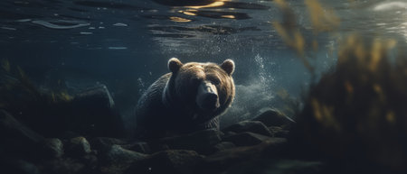 Bear swim gracefully underwater. Generative AI