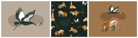 Hand drawn vector abstract stock flat graphic modern summer safari savanna animals prints and patterns collection set isolated on color background.