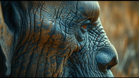 A close up of the face and neck area on an elephant, AI