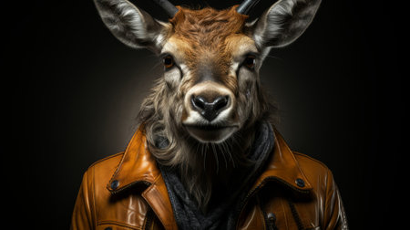 A deer with antlers in a leather jacket. Generative AI.