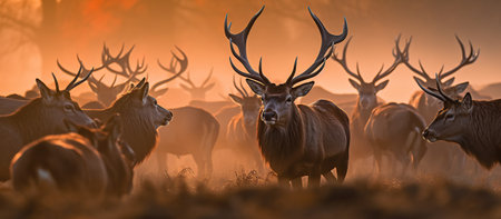 Red Deer calling during rutting season at sunrise Generative AI
