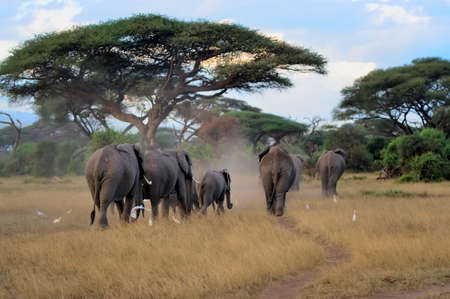 Elephants in the Amboseli National Park, Tsavo East and Tsavo West in Kenya