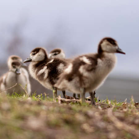 Chicks of the Egyptian Goose Alopochen aegyptiacus in the water in the Vondelpark in the Netherlands