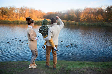 Caucasian woman mother and son taking picture photo of squirrel in park. Mom and boy kid snapping smartphone photos of wild animal in forest. Fun outdoor family activity.