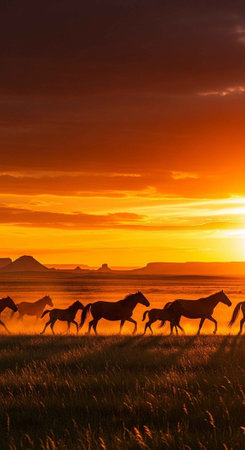 Beautiful sky on sunset or sunrise with flying birds natural background