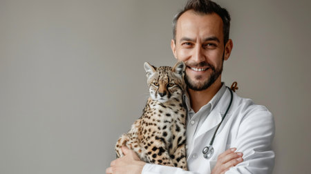 A young veterinarian gently holds a small bird in a veterinary clinic, reflecting his commitment to animal care, health, and compassion for all creatures.
