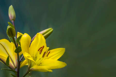 Yellow lilies flowers on green background