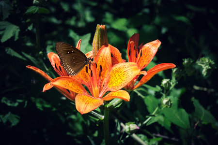 a crow swallowtail swallowing the nectar of wild lily