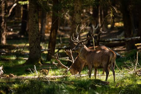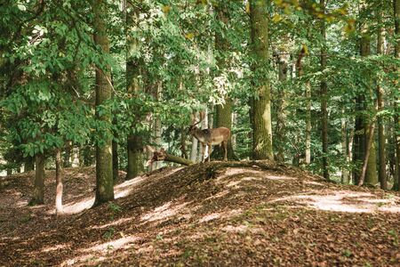 beautiful deers standing in a wild forest