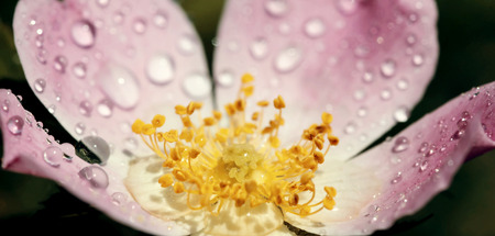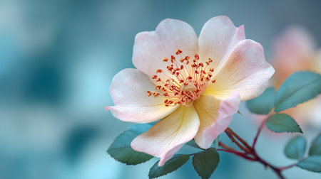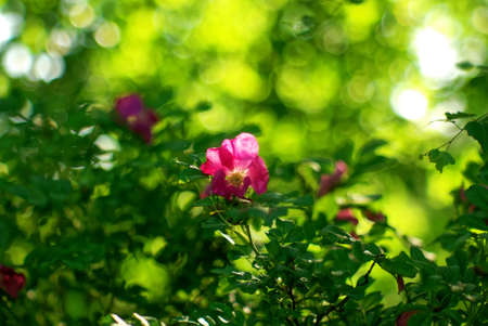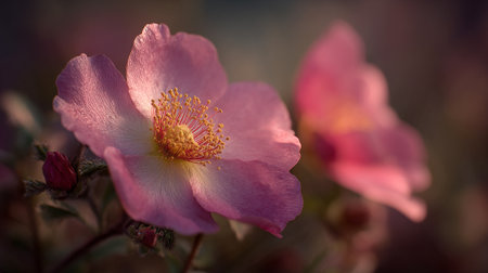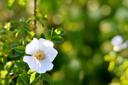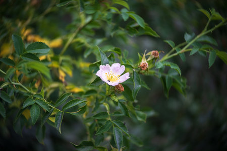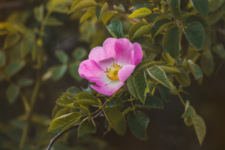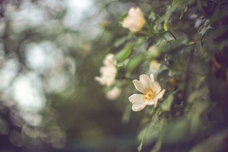 Blooming wild rose flower macro, shallow DOF, selective focus, shallow DOF.