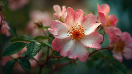 Delicate Pink and White Dog Rose Flower Blooming in the Garden