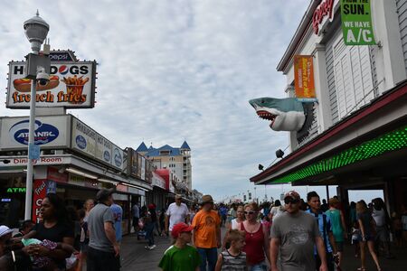 OCEAN CITY, NEW JERSEY/USA - JUNE 27, 2019: Tourists enjoying the Ocean City Boardwalk at Sunset