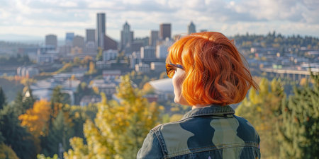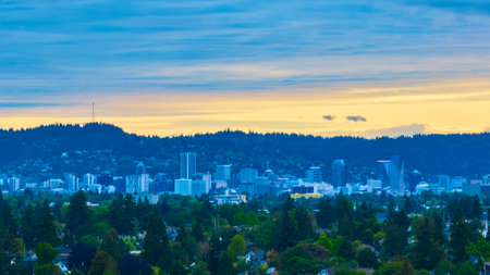 Aerial View of Portland Skyline with Green Hills and Suburban Foreground