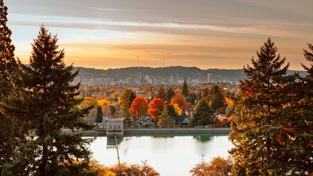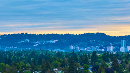 Sunrise View of Portland, Oregon from Pittock Mansion.