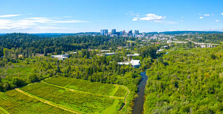 Bellevue Washington USA Aerial Landscape Establishing Shot of City From Mercer Slough
