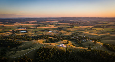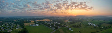 An aerial view of a morning sunrise over the farmland in Lancaster County.