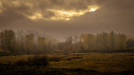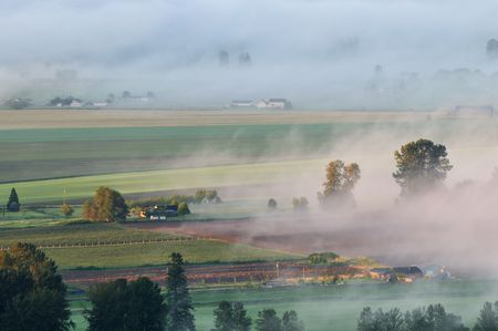 Fraser Valley at foggy sunrise, British Columbia, Canada