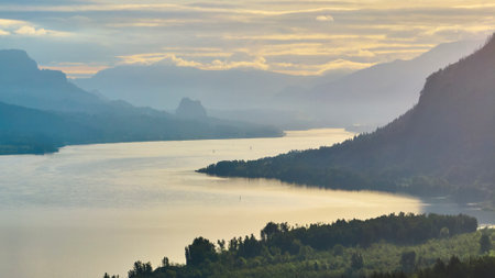 Jonsrud viewpoint forests and the Sandy river landscape panorama Oregon state.
